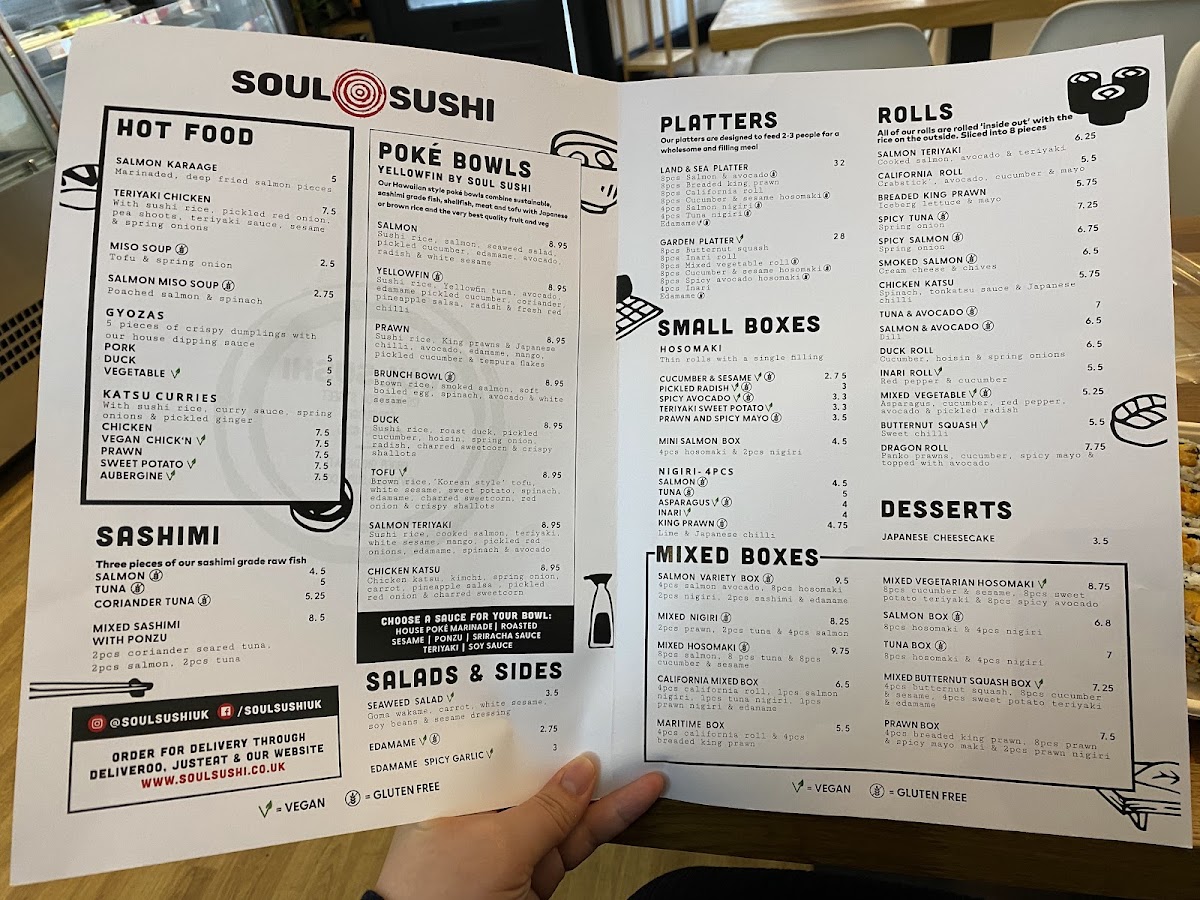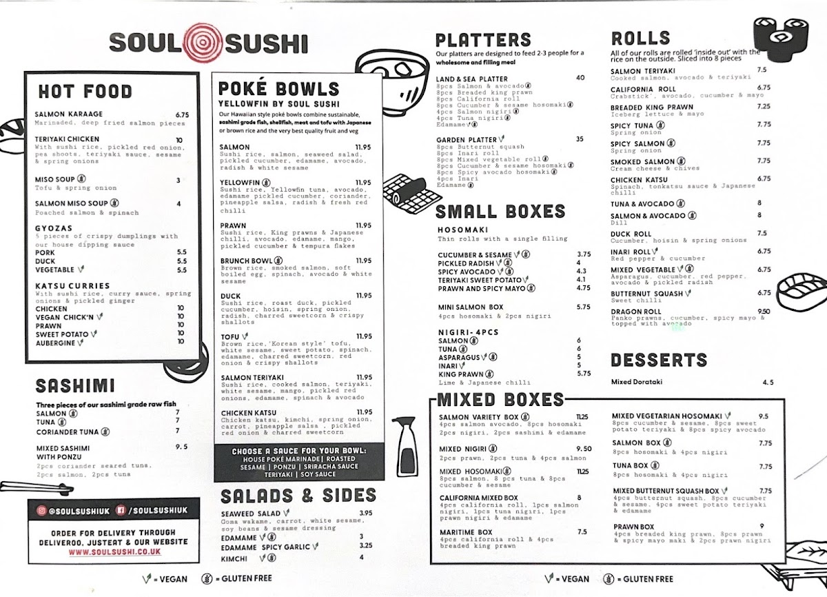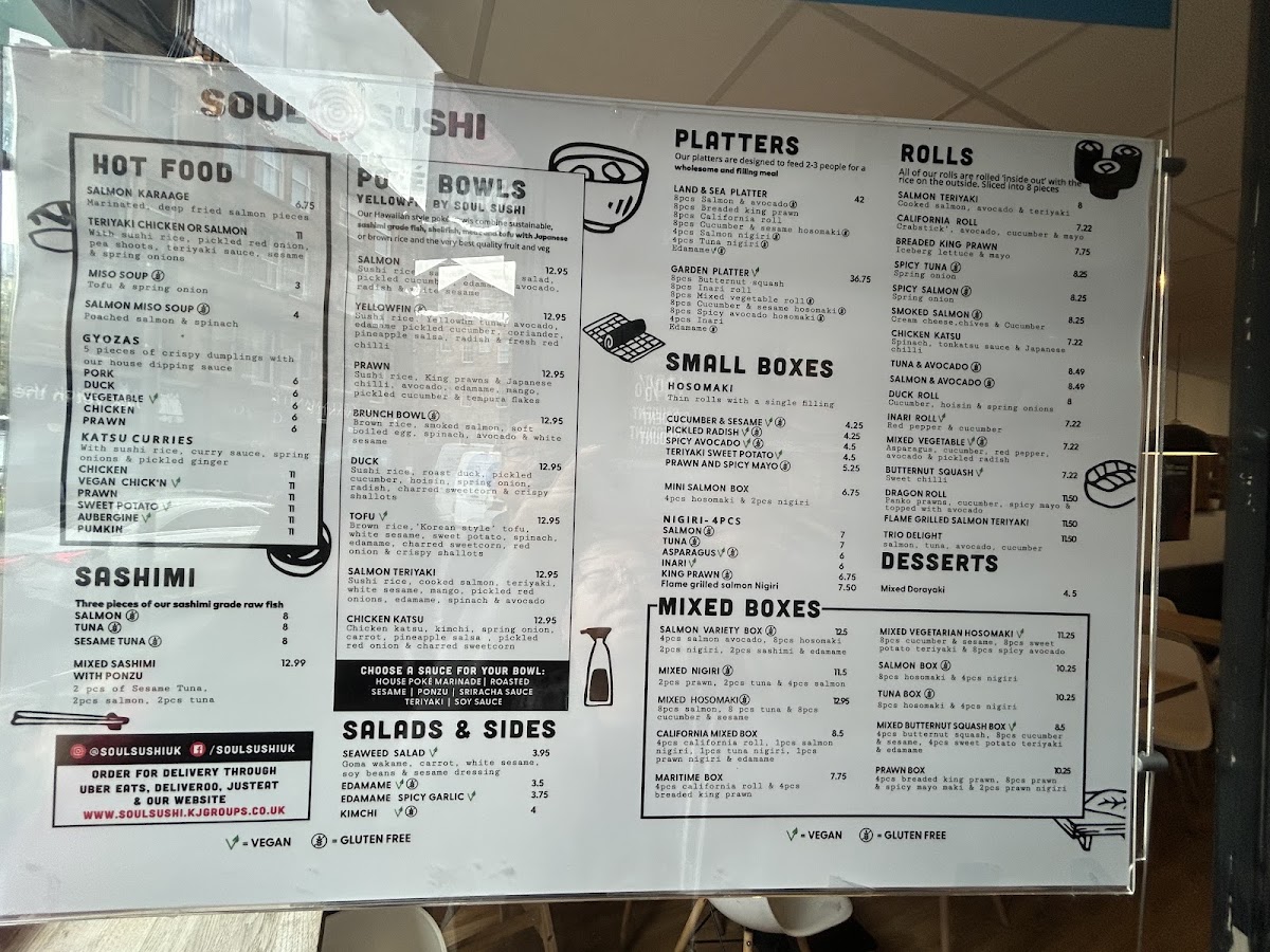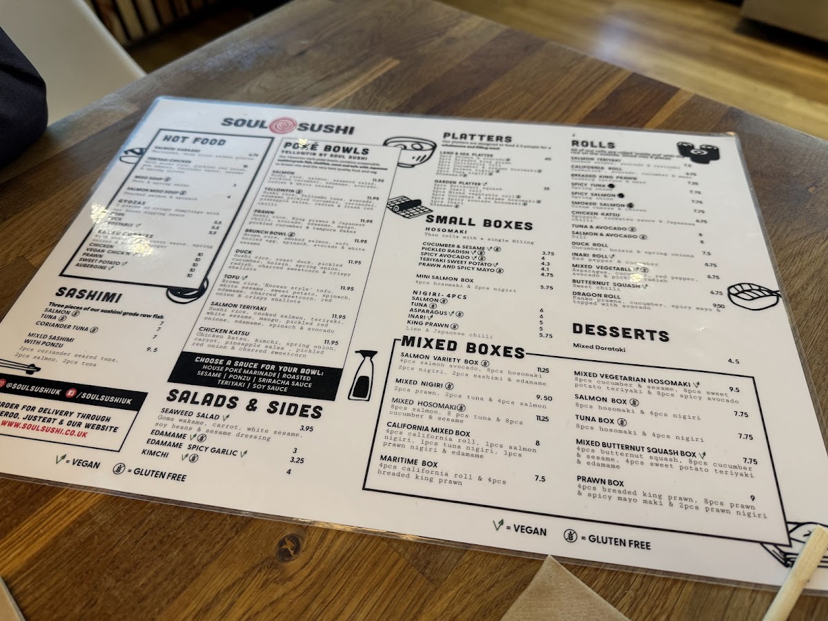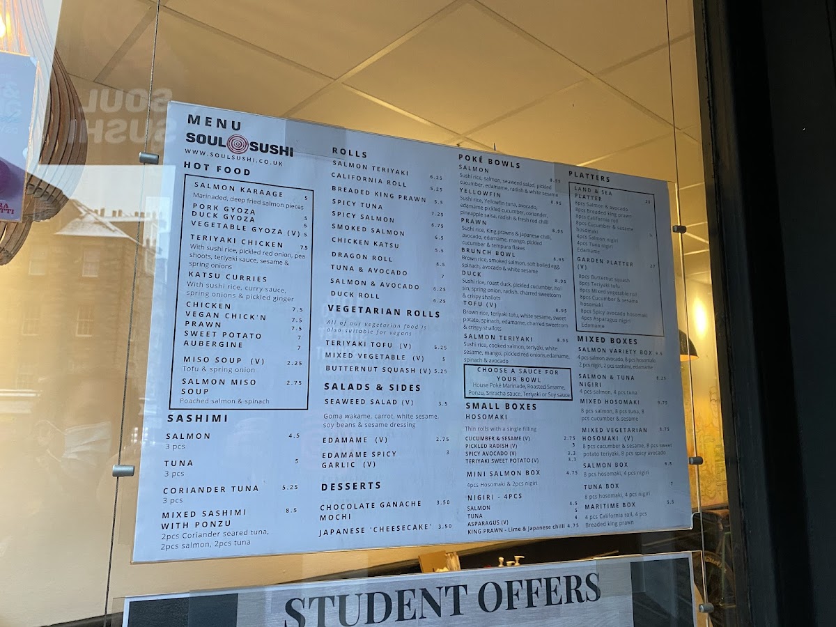 Welcome to Soul Sushi, a vibrant sushi haven nestled in the heart of Edinburgh at 126 Nicolson St. Renowned for its mouthwatering menu, Soul Sushi offers a delightful variety of dishes that cater to every palate. Indulge in exquisite poké bowls, featuring fresh ingredients like king prawns, smoked salmon, and a delectable 'Korean style' tofu option. The menu also boasts enticing salads, including a refreshing seaweed salad and spicy garlic edamame, perfect as sides or light meals. For those with a sweet tooth, the mixed Dorataki—filled with red bean paste and cream cheese—offers a unique dessert experience.